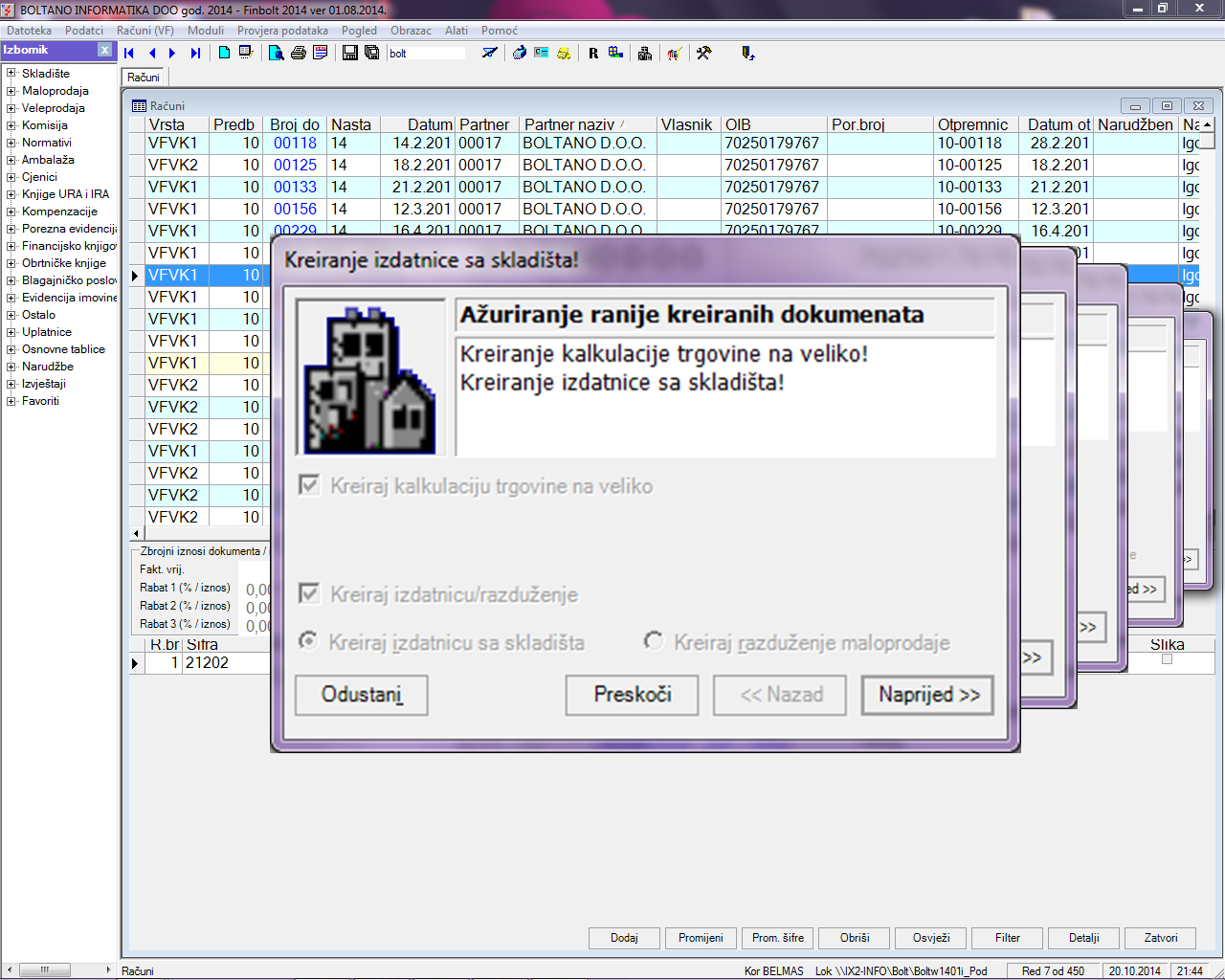 Jednostavnost i brzinaUložili smo značajan napor da korisnicima omogućimo što jednostavnije korištenje programa sa minimalnim brojem odabira. Tako skladišnu primku ili veleprodajni račun proknjižavate sa par odabira (pri tome Vam pomaže čarobnjak) a potrebna zapisivanja odnosno kreiranje povezanih dokumenata se vrši automatski (za veleprodajni račun program automatski kreira izdatnicu sa skladišta, ažurira stanje na skladištu, kreira veleprodajnu kalkulaciju, te zapisuje podatak u Knjigu izlaznih računa IRA). Ako ste dokument promijenili nakon čarobiranja, ne brinite, samo ponovo pokrenite čarobnjaka i svi povezani dokumenti će biti ažurirani. |
